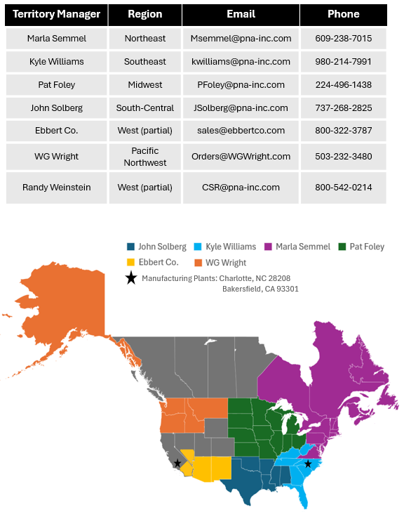 Our Territory Managers are concrete flatwork experts that can help answer any question you may have about PNA's products and services. Contact the PNA representative based on the state/province in which you or your project are located.